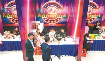 10月25日,安徽省合肥市庐江县电商扶贫助农网络直播带货比赛现场,来自全县的18个直播达人正在同台比武网络直播带货。