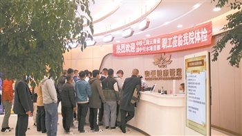 10月18日、19日 ,为切实关心关爱一线员工,进一步提高员工自我保健意识,中铁七局武汉公司云南滇中引水项目部组织60余名员工开展了一年一度的员工健康体检活动,为员工送上一份关怀。 韩罗义 摄