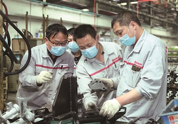 9月11日下午3点,东科克诺尔公司制造工厂,趁工休时间,制造部继动阀线线长贾留华来到员工王小红旁边,给她分析这条生产线40序产品综合试验的操作要领。这是东风有限党委开展百日攻坚劳动竞赛的一幕。