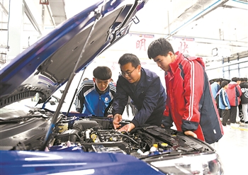 10月27日,河北省阜平县职教中心讲师指导学生进行汽修实践操作。近年来,阜平县职业技术教育中心采取“校企结合”“工学结合”等方式,有针对性地培养订单式职业人才,受到用人单位欢迎。 新华社记者 朱旭东 摄
