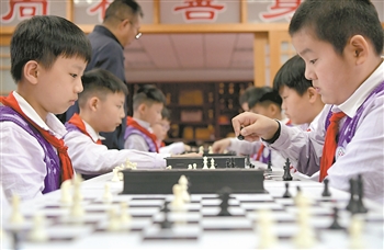 10月26日,在江西南昌育新学校教育集团青桥校区,学生们在国际象棋课堂上下棋。作为“全国国际象棋传统学校”,育新学校教育集团青桥校区把棋课安排进课表,每班每周开设一堂国际象棋课,让学生感受到棋文化之美。