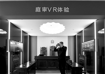 10月26日,一名观众在贵州省遵义市法治教育政治生活馆利用VR体验庭审工作。
