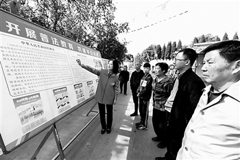 中国铁路郑州局集团公司洛阳工务段组织青年志愿者进村庄、到道口,普及铁路安全常识。图为10月22日,该段青年志愿者在铁路道口开展普法知识宣传教育。 (陈斌)