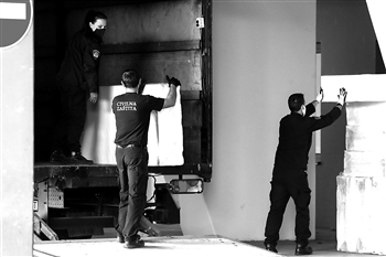 10月26日,在克罗地亚萨格勒布,工作人员在被改建成临时医院的体育馆内搬运床垫。因新冠疫情持续加剧,克罗地亚民防部门开始把体育馆等公共场所改建成临时医院。 新华社发(卢卡·施坦茨尔 摄)
