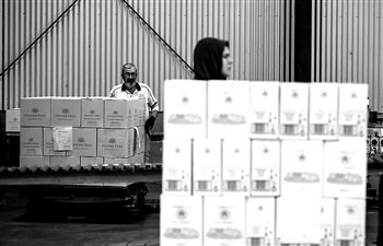 10月23日,在澳大利亚悉尼附近的尚溪红酒工厂,工人在包装车间工作。