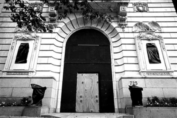 10月31日,在美国华盛顿,白宫附近一家投资公司用木板加固了门窗。美国总统大选进入倒计时阶段,首都华盛顿白宫附近的建筑工地暂停施工,一些地标建筑、银行、咖啡店、旅馆等纷纷用木板加固门窗,以应对大选期间可能出现的抗议或骚乱。