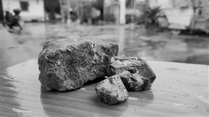 饶丰提家中留存的矿石,沉甸甸的。任德志/摄