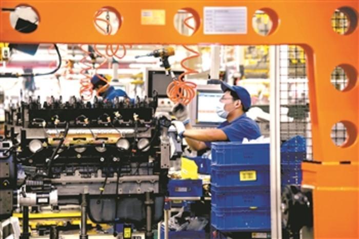 山东省紧贴新动能成长需要,大力提升自主创新能力,以创新的乘法效应增强高质量发展活力。为推动创新,潍柴集团最近10年在发动机业务上累计投入研发费用300亿元。图为潍柴集团工人在流水线上装配发动机。