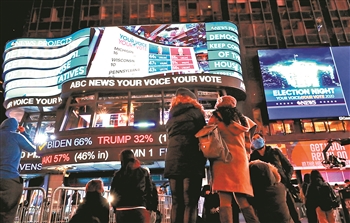 11月3日,人们在美国纽约时报广场观看实时计票结果。新华社记者 王迎 摄