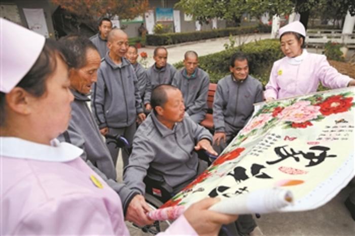 陕西省洛南县灵口敬老院里,善于缝十字绣的王项群老人正在给其他老人讲解缝制技巧和注意事项。据了解,陕西洛南县目前共有9所敬老院,对全县愿意到敬老院的农村特困人员实行集中供养。本报记者 王伟伟 摄