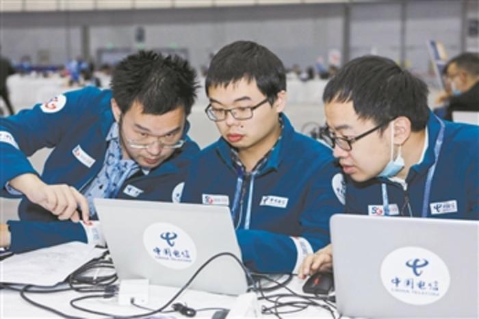 据了解,随着我国工业互联网的快速发展,网络安全人才需求越来越大,人才培养刻不容缓。该项赛事由工业和信息化部等四部门联合主办,中国信息和通信研究院等承办。图为参赛选手在紧张比赛中。