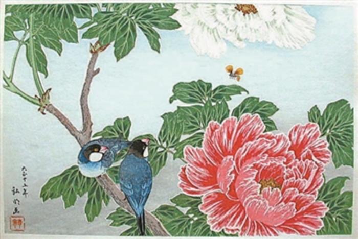 牡丹和稻田鸟 [日] 高桥松亭 晓阳 供图
