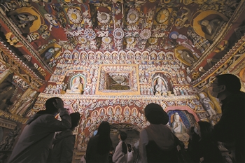 11月3日,杭州市民和游客在浙江大学艺术与考古博物馆的展厅内观赏全球首个可移动3D打印石窟——云冈石窟“音乐窟”,这也是该项目首次面向社会公众展出。观众在参观时可触摸3D打印的云冈石窟“音乐窟”,能近距离感受中华传统文化艺术与现代科技结合带来的独特魅力。
