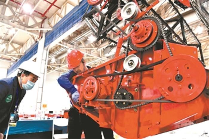 11月9日,在潍坊鲁台会展中心,农机修理工参加收割机综合故障诊断与排除技能大赛。