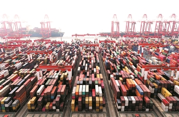 图为11月8日,上海洋山四期自动化码头的集装箱货场。