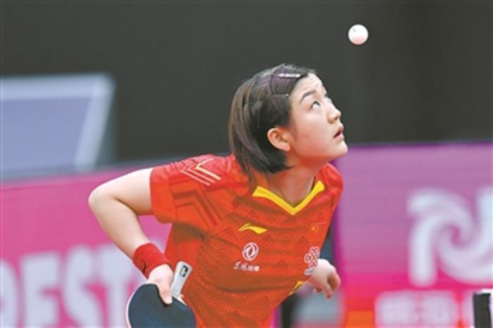 11月9日,中国选手陈梦在比赛中发球。当日,在山东威海举行的2020国际乒联女子世界杯四分之一决赛中,陈梦以4比0战胜美国选手张安,晋级四强。 新华社记者 朱峥 摄