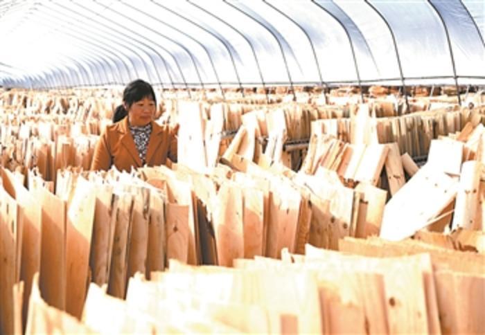 11月11日,屏南县路下乡富塘造福新村脱贫户魏万莲在当地一家木板厂就业。福建省宁德市屏南县实施危房改造及易地扶贫搬迁工程,并在安置点周边发展蔬菜、食用菌等种植业,通过产业扶贫带动搬迁群众奔小康。 新华社记者 林善传 摄