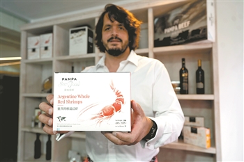 11月6日,在阿根廷布宜诺斯艾利斯,工作人员展示跨境电商平台潘帕市场出口中国的红虾。主打食品的阿根廷跨境电子商务平台潘帕市场“备战”中国的“双十一”促销活动。 新华社发(马丁·萨巴拉 摄)