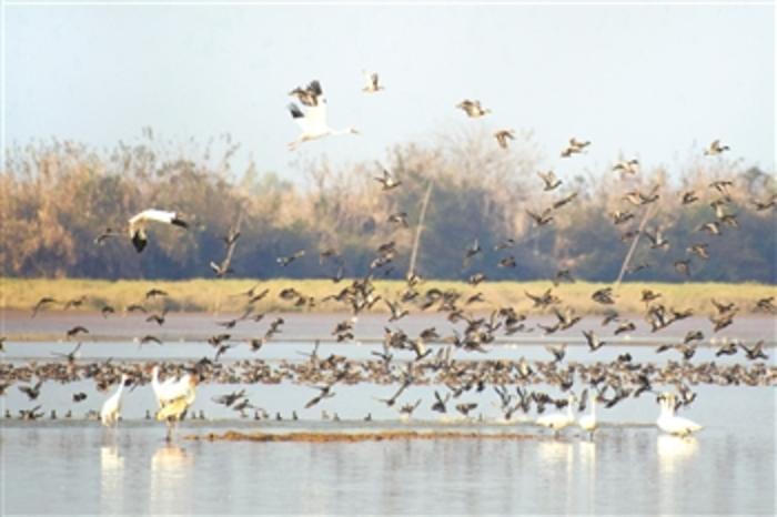 这是11月11日在湖南西洞庭湖国家级自然保护区拍摄的候鸟。