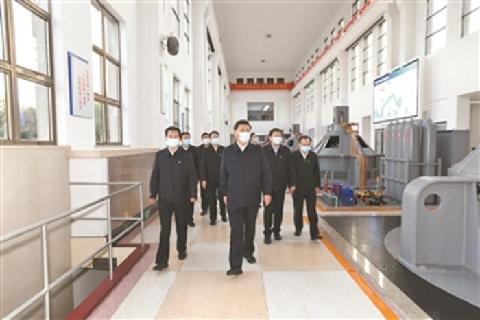 11月12日至13日,中共中央总书记、国家主席、中央军委主席习近平在江苏考察。这是13日下午,习近平在扬州市江都水利枢纽第四抽水站,察看抽水泵运行情况。新华社记者 谢环驰 摄