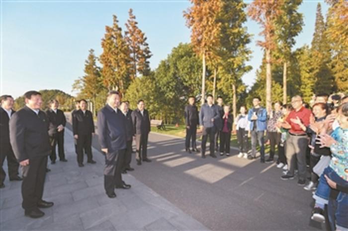 11月12日至13日,中共中央总书记、国家主席、中央军委主席习近平在江苏考察。这是12日下午,习近平在南通市五山地区滨江片区考察时,同市民群众亲切交流。新华社记者 谢环驰 摄