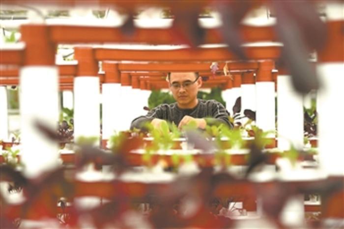 11月16日,河北省河间市一家现代农业示范园区工人在智能温室内管理立体栽培蔬菜。近年来,河间市积极培育壮大现代农业示范园区、家庭农场等新型现代农业经营主体,就近吸纳当地农民变身农业产业工人。新华社记者 朱旭东 摄