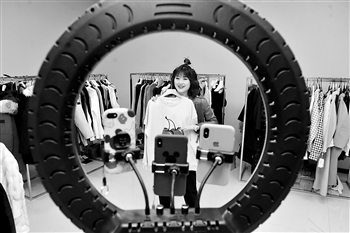 临近“双11”,河北沧州市肃宁县一名主播在直播平台上推介服装。新华社发(苑立伟 摄)