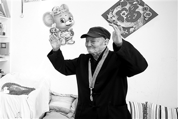 图一:北京市门头沟的家中,90岁高龄的李修福讲述自己当年英勇杀敌的故事。