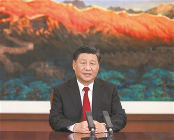 11月19日,国家主席习近平在北京以视频方式出席亚太经合组织工商领导人对话会并发表题为《构建新发展格局 实现互利共赢》的主旨演讲。新华社记者 李学仁 摄