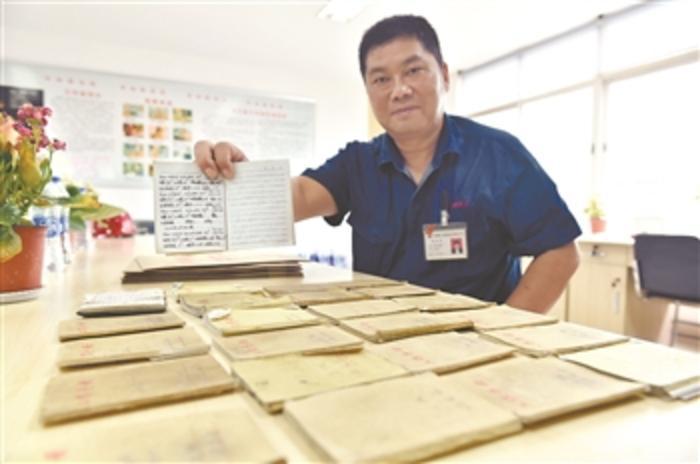 杨金安展示自己的工作手册。