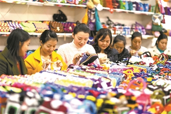 近年来,贵州省赤水市长期镇在巩固脱贫攻坚成果中,实施“党建引领+巧手脱贫”工程,免费对易地扶贫搬迁留守妇女、困难群众进行手工钩织、刺绣培训,定向回收钩织的鞋袜、衣帽、茶具套等成品,进行“线上+线下”销售,带动百余名易地搬迁群众在家门口增收脱贫。