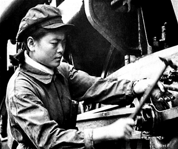 王崇伦,原鞍钢工人,1956年和1959年两次被授予全国先进生产者。1953年,王崇伦作为鞍钢北部机修厂工具车间的刨工,相继改进成功7种工具、卡具,发明了“万能工具胎”,极大地提高了工作效率。他用一年时间完成了几年的生产任务,成为全国最先完成第一个五年计划的一线工人。