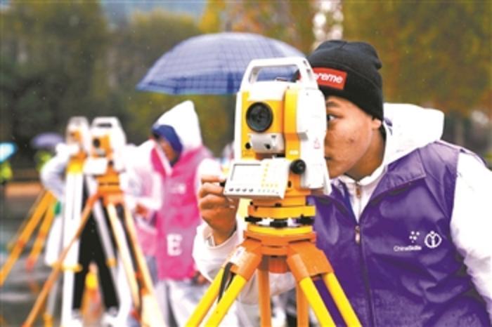 11月21日,参赛选手在山东省邹平市举行的2020年全国职业院校技能大赛改革试点赛“工程测量”赛项中进行实地操作。当日,132名选手参加比赛。竞赛考察学生在工程测量中最常用技能以及动手操作能力。