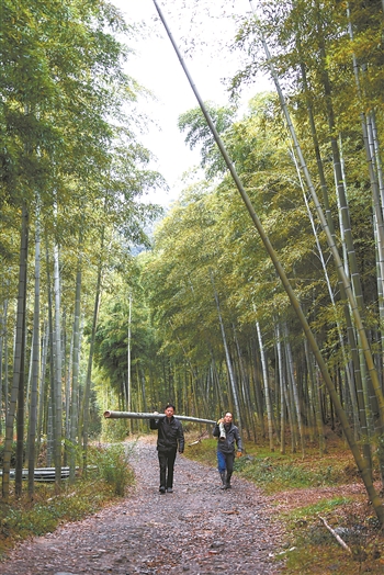 11月26日,南山村的村民将砍收的竹子搬运下山。