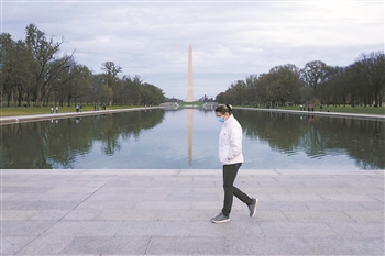 11月25日,游客在美国华盛顿的国家广场游览。美国劳工部25日公布的数据显示,在截至11月21日的一周,美国首次申请失业救济人数环比上升3万至77.8万。