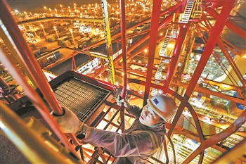 竺士杰登上桥吊。 王鹏 摄