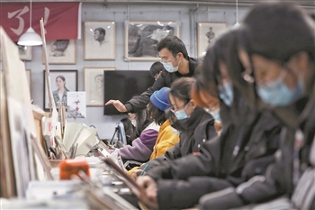 11月27日,在北京城市副中心通州宋庄镇华卿画室,来自全国各地准备参加美术高考的高三学生正在冲刺练习,迎接即将到来的各地美术联考。