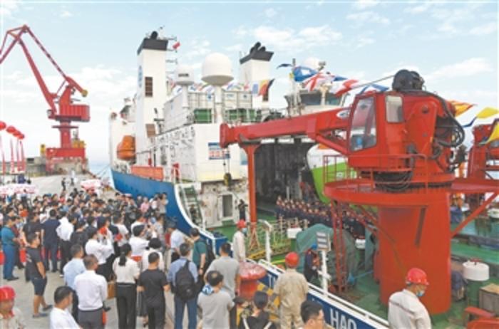 28日上午8时30分许,在马里亚纳海沟结束科考任务的“探索一号”科考船在海南三亚南山港码头靠泊下锚,成功实现10909米坐底纪录的“奋斗者”号也随船胜利返航。
