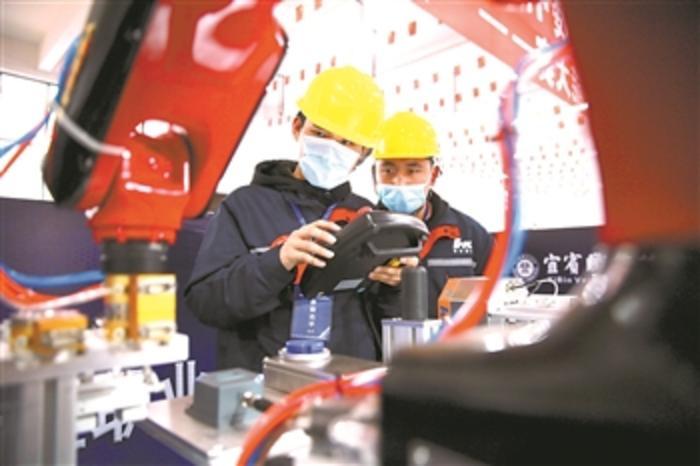 11月28日,在四川省宜宾三江新区的国家级智能终端产业示范基地,2020年度机械行业职业教育技能大赛“华中数控杯”工业机器人装调与应用技术赛项正在举行。本届大赛由机械工业教育发展中心、全国机械职业教育教学指导委员会主办。兰锋 摄/人民图片