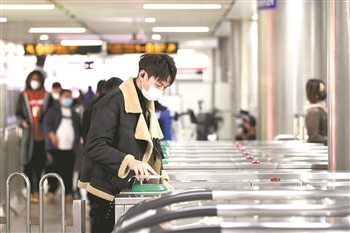 12月2日,在上海地铁一号线徐家汇站,乘客刷码通过闸机。