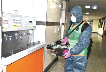 受新冠疫情影响,原定于今年11月19日举行的韩国大学修学能力考试(相当于中国的“高考”)被推迟至12月3日举行。高考前夕,韩国各地考点进行消杀等准备工作,以确保高考在安全的环境中进行。