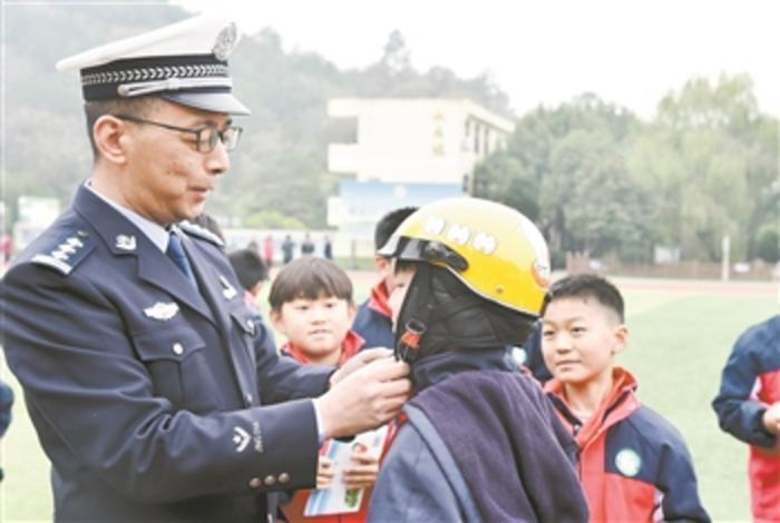 12月2日,第9个全国交通安全日,浙江省湖州交警支队会同多部门走进农民工子弟学校开展活动,发放宣传资料,并为810名农民工子弟学生赠送了安全头盔。
