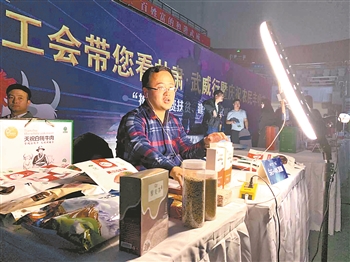 在疫情防控阻击战和助力企业复工复产中,甘肃省总工会主动出击、担当作为,在下拨专项补助资金,广泛开展“关爱志愿服务活动”,进企业、到车间慰问坚守一线职工的同时,积极开展“打赢疫情防控阻击战”主题劳动和技能竞赛,激发广大职工的劳动生产热情。图为甘肃省总工会在全省脱贫攻坚的重点地区,策划举办的“工会带您看甘肃”网络直播活动,助力消费扶贫。