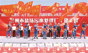 甘肃省总工会聚焦重大战略、重大工程、重大项目、重点目标,广泛开展劳动竞赛,推动高质量发展。图为兰州市盐场污水处理厂扩建工程正式开工建设,现场同步举行了“抗疫情、保增长,大干100天”劳动竞赛誓师大会暨“夏送清凉”慰问活动。该项工程既是一项污水集中治理工程,也是一项保护黄河的生态工程,项目建成实施将对改善黄河兰州段水系生态环境,加快兰州景观水系建设,巩固“黄河之滨也很美”的重要成果具有深远的意义。
