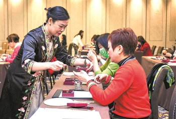 12月7日,“粤港澳大湾区工匠精神传承与培育计划(澳门)”启动仪式暨“南粤工匠专场文化讲座”在澳门举行,邀请来自中国四大名绣之一的“广绣”传承人举办讲座,期望将工匠精神带入澳门职业培训项目。图为“广绣”家族第五代传承人梁秀玲在美狮美高梅举办“广绣美学传承体验”,带领40位参加者通过一针一线体会“广绣”匠心。 钟欣 摄/中新社