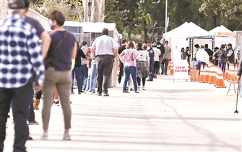 当日,美国洛杉矶县圣费尔南多公园内临时搭建的新冠检测站排起长龙。这是一处专为那些不能开车或自己没有车辆的民众设立的步行检测站。目前,美国累计确诊病例最多的州是加利福尼亚州,为1397237例。 新华社发