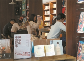 图为一家阅读区域满座的小型实体书店。 欧阳 摄影报道