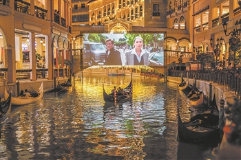 12月6日,在菲律宾马尼拉,人们乘坐贡多拉在“水上电影院”观看电影。