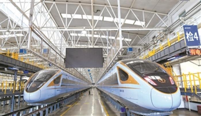 当日,CR300BF型“复兴号”动车组抵达西安动车段,担负即将开通的银西高铁旅客运输任务。这是该型号动车组在我国的首次上线。