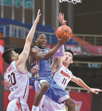 当日,在浙江诸暨举行的2020-2021赛季中国男子篮球职业联赛(CBA)第二阶段第18轮比赛中,北京首钢队以101比118不敌广东东莞大益队。新华社记者 黄宗治 摄